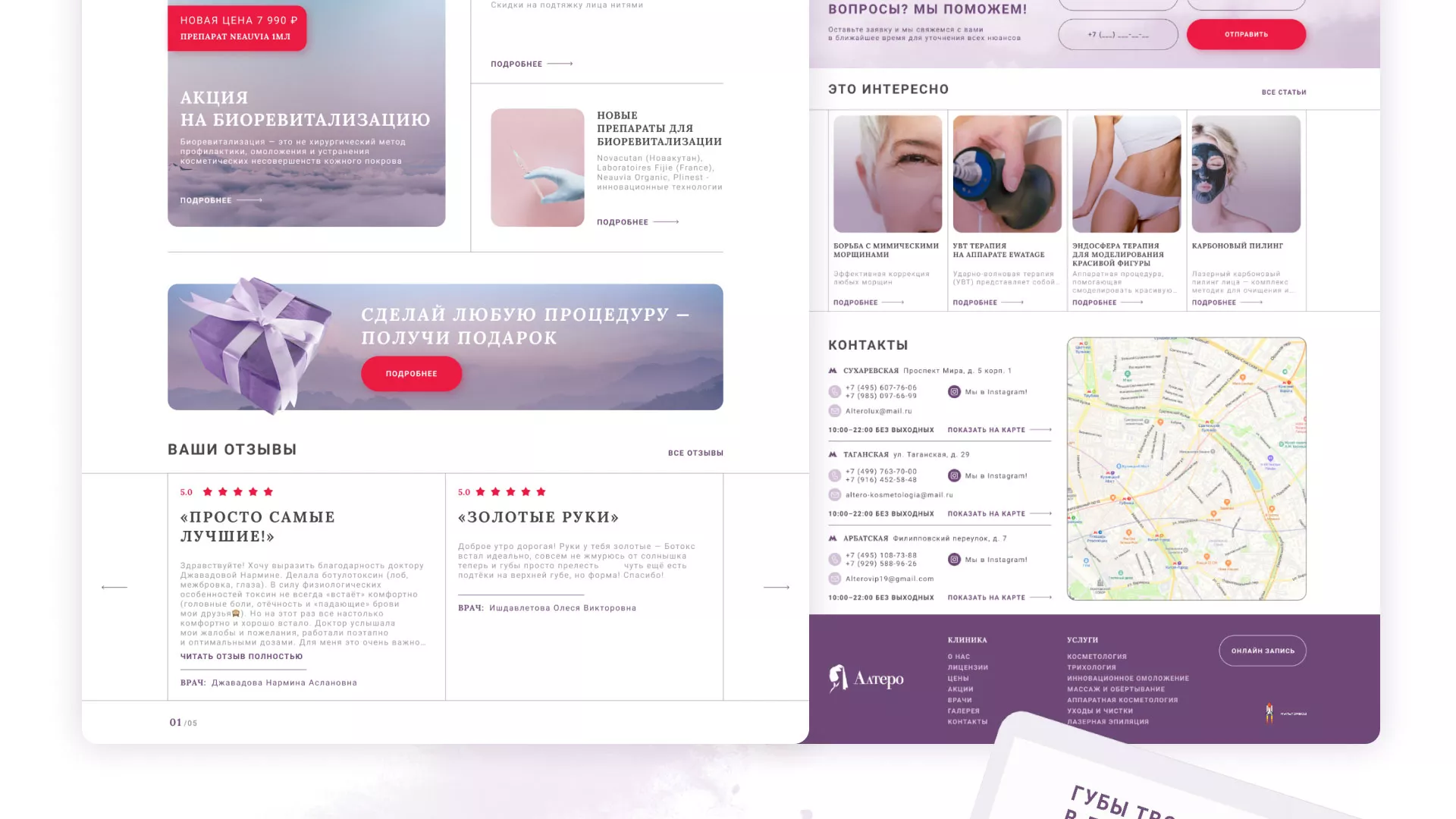 Сеть клиник эстетической косметологии «Алтеро» в Ардоне — это квалифицированные специалисты, новейшее оборудование, качественные препараты, эффективные и разнообразные методы лечения, индивидуальный подход с учетом физиологических особенностей и пожеланий пациента, доступные цены.